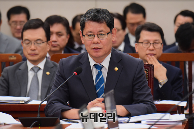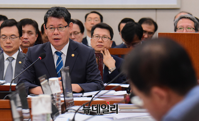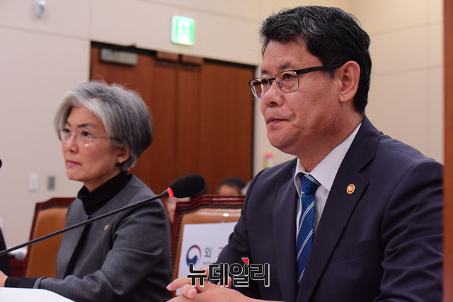김연철 통일부 장관이 30일 오후 국회에서 열린 외교통일위원회 전체회의에서 참석해 2020년도 예산안 및 기금운용계획 관련 질문에 답하고 있다.