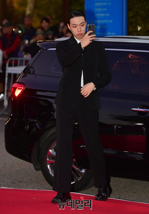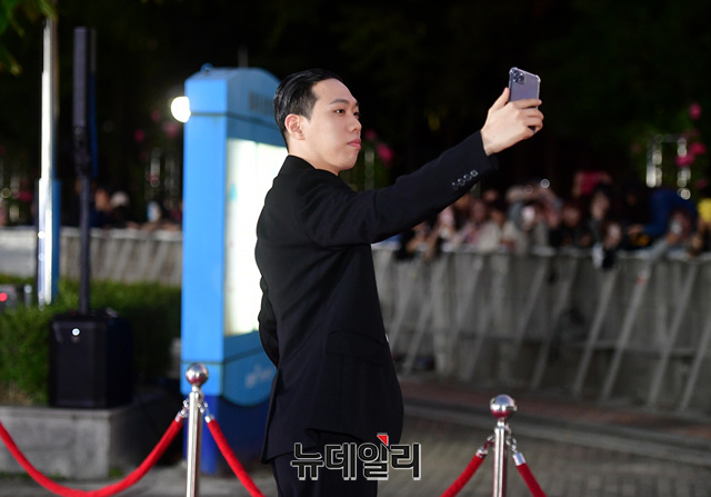 [포토] 신상 휴대폰으로 셀카 찍으며 레드카펫 밟는 비와이
