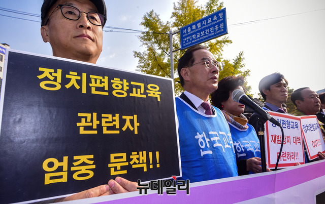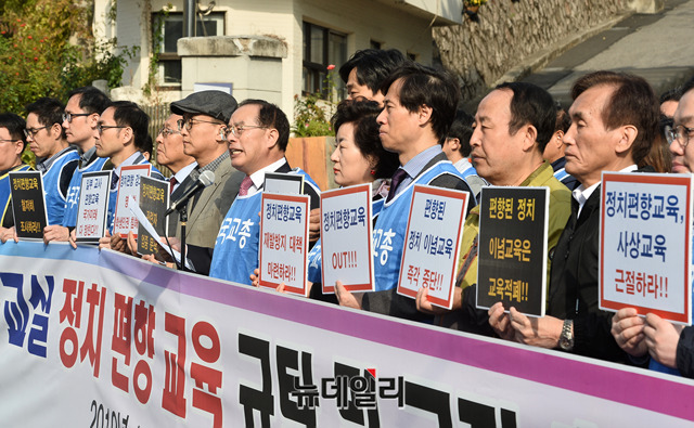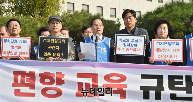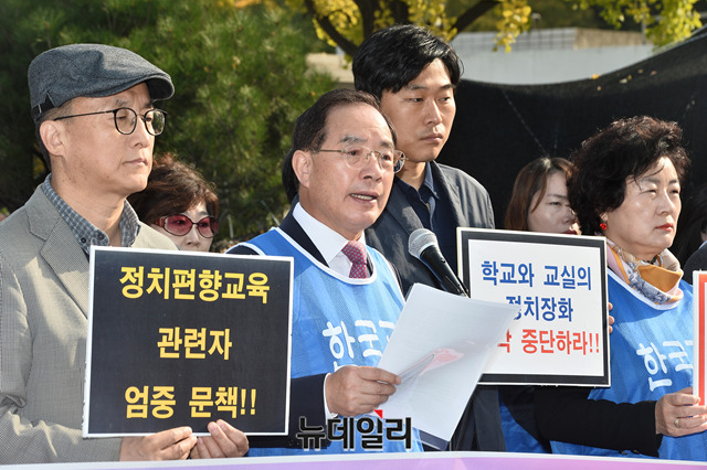하 회장은 "교육부와 각 시·도교육청은 금번 정치편향 교육 사태에 대해 철저히 조사해 문책하고, 학교와 교실의 정치장화를 근절하는 특단의 대책을 마련하라"고 말했다.
