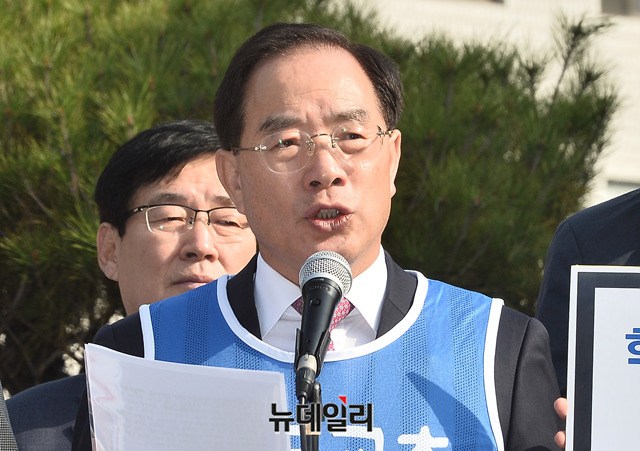 하윤수 한국교원단체총연합회 회장이 31일 오전 서울 종로구 서울시교육청 정문 앞에서 열린 '학교·교실 정치편향 교육 규탄 및 근절 촉구 기자회견'에서 발언을 하고 있다.