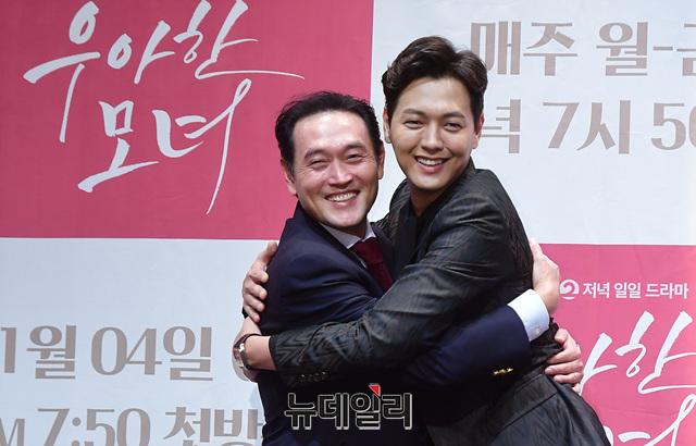 배우 김명수(왼쪽), 김흥수가 31일 오후 서울 구로구 라마다 서울 신도림에서 열린 KBS2 저녁 일일드라마 '우아한 모녀(연출 어수선, 극본 오상희)' 제작보고회에서 포토타임을 갖고 있다. 11월 4일 저녁 7시 50분 첫 방송.