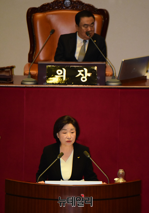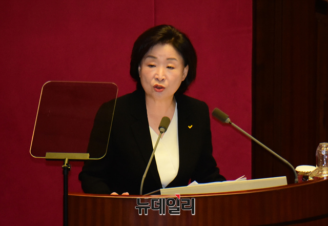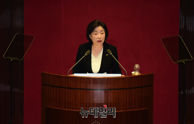 심상정 정의당 대표가 31일 오후 국회 본회의장에서 비교섭단체 대표연설을 하고 있다.