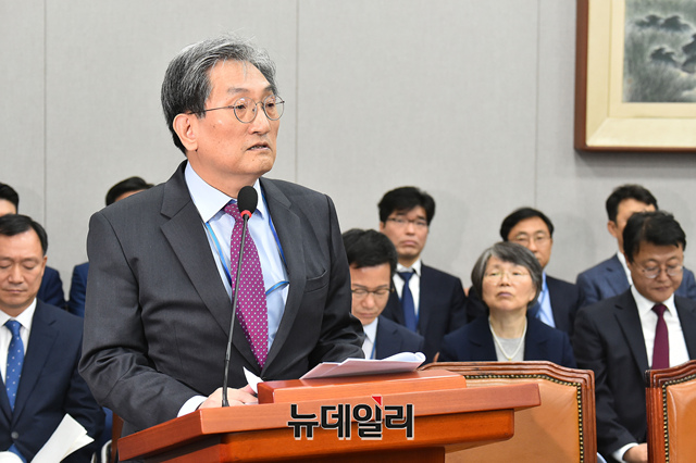 노영민 대통령 비서실장이 1일 오전 국회에서 열린 국회 운영위원회의 청와대 대통령 비서실, 국가안보실, 대통령경호처에 대한 국정감사에 출석해 현안보고를 하고 있다.