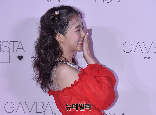 모델 아이린이 1일 오후 서울 중구 레스케이프 호텔에서 열린 'GIAMBATTISTA VALLI X H&M(지암바티스타발리 X 에이치엔엠)' 컬렉션 프리뷰 이벤트에서 포토타임을 갖고 있다.