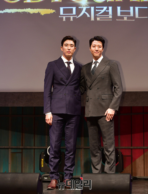 배우 강경준, 이동건이 4일 오후 서울 용산구 블루스퀘어에서 열린 뮤지컬 '보디가드' 기자간담회에서 포토타임을 갖고 있다. 뮤지컬 '보디가드'는 11월 28일부터 내년 2월 23일까지 LG아트센터에서 공연된다.