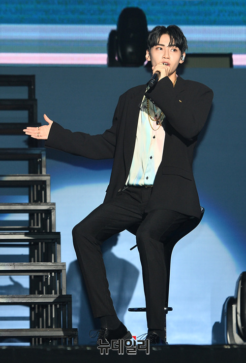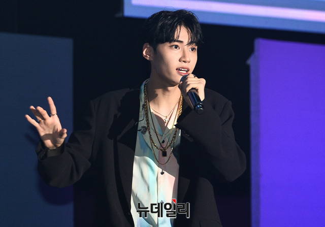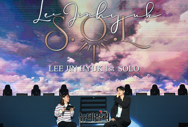 가수 이진혁이 4일 오후 서울 강서구 KBS 아레나에서 열린 첫 솔로 앨범 'S.O.L(에스.오.엘)' 쇼케이스에서 수록곡 소개를 하고 있다.