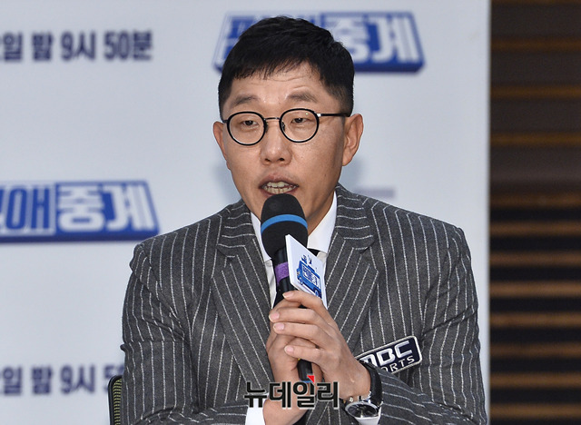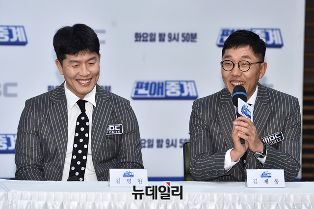 개그맨 김제동이 5일 오전 서울 마포구 MBC신사옥에서 열린 예능프로그램 '편애중계' 제작발표회에서 프로그램 소개를 하고 있다.