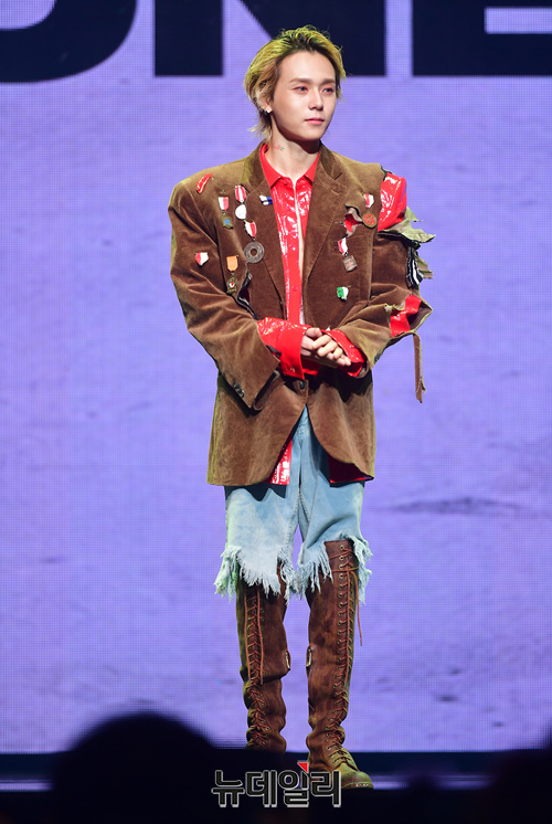 가수 '던(DAWN)'이 5일 오후 서울 용산구 블루스퀘어에서 열린 본인의 첫 번째 싱글앨범 '머니' 쇼케이스에서 포토타임을 갖고 있다. 이날 쇼케이스는 같은 소속사의 현아와 공동으로 진행됐다. 현아는 '플라워 샤워'를 공개했다.