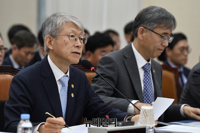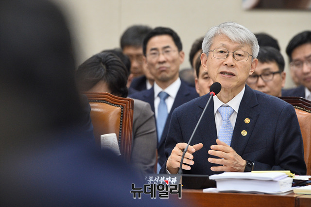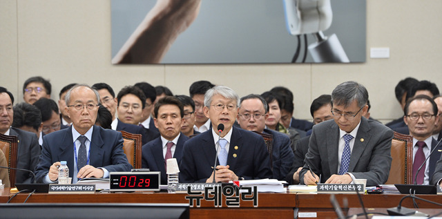 최기영 과학기술정보통신부 장관이 5일 오후 국회 과학기술정보방송통신위원회 전체회의에서 의원들의 질의에 답하고 있다.