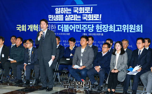 이인영 더불어민주당 원내대표가 6일 오전 국회 로덴더홀에서 열린 '국회 개혁을 위한 현장최고위원회의'에 참석해 모두 발언을 하고 있다.