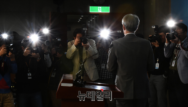 [포토] 불출마 선언 후 정론관 떠는 유민봉 의원