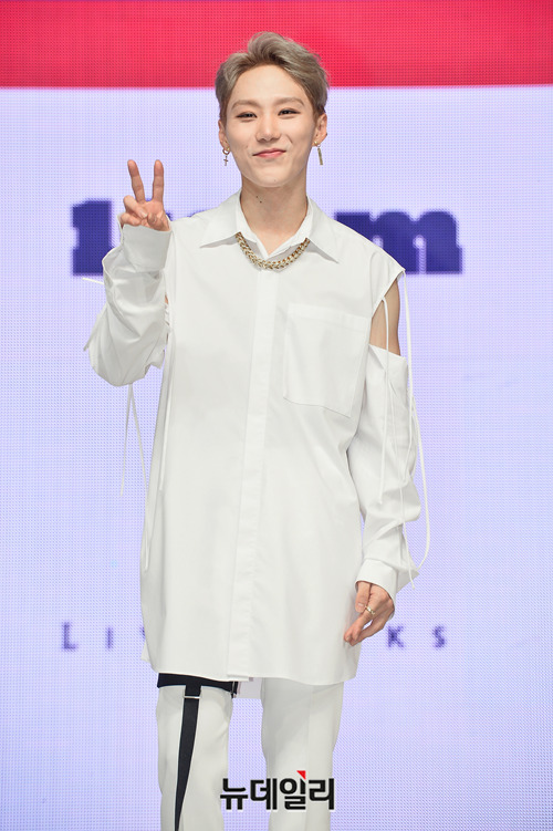 원팀 'BC(비씨)'가 6일 오후 서울 광진구 예스24라이브홀에서 열린 세 번째 미니앨범 'ONE(원)' 쇼케이스에서 포토타임을 갖고 있다.