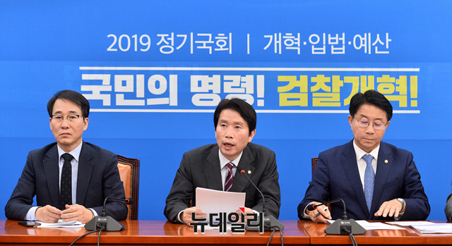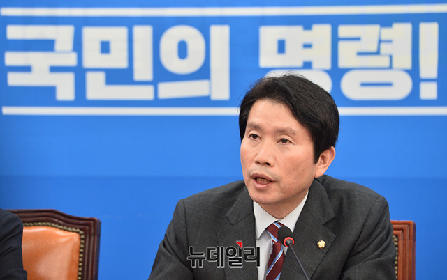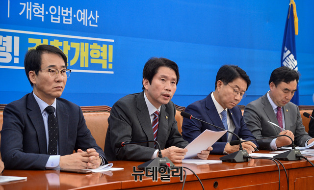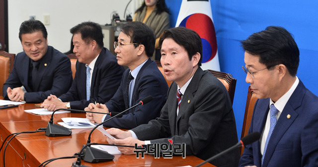 이인영 더불어민주당 원내대표가 7일 오전 국회에서 열린 정책조정회의에서 모두발언을 하고 있다.