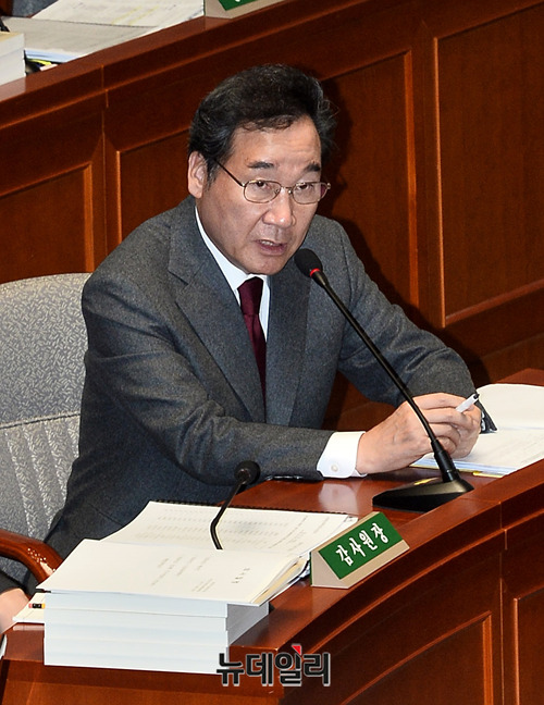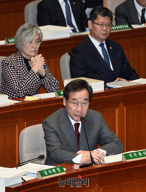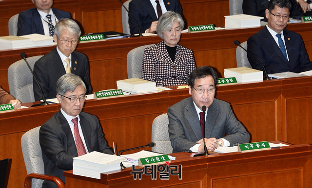 이낙연 국무총리가 7일 오전 국회에서 열린 예산결산특별위원회 전체회의에서 의원들의 질의에 답하고 있다. 이날 이 총리는 강기정 정무수석 논란에 대해 "송구스럽게 생각한다"고 밝혔다.