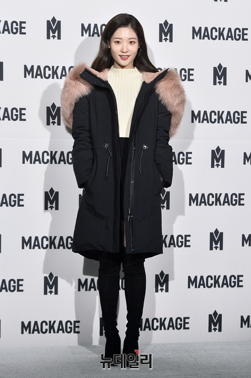 다이아 정채연이 7일 오후 서울 강남구 모스스튜디오에서 열린 '맥케이지(MACKAGE) 웨더 스테이션 서울' 행사에서 포토타임을 갖고 있다.