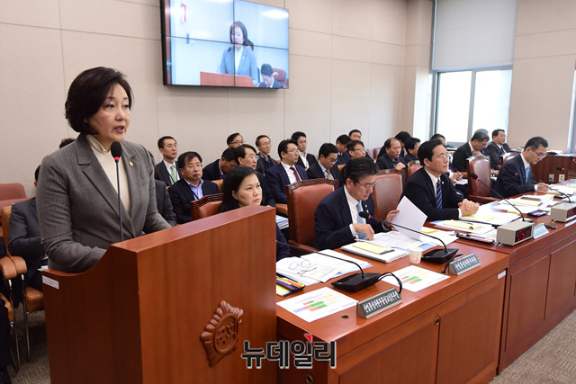박영선 중소벤처기업부 장관이 8일 오전 국회에서 열린 산업통상자원중소벤처기업위원회 전체회의에 참석해 업무보고를 하고 있다.
