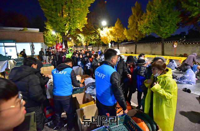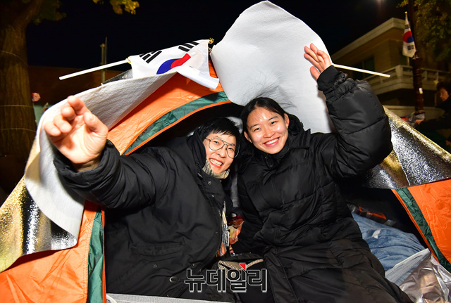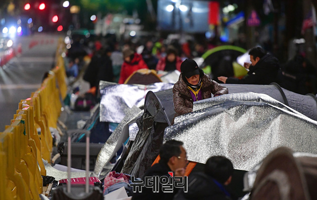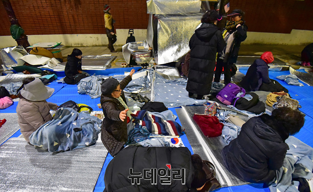 패딩 입고, 스티로폼 깔고, 이불 덮고… 애국자 400명, 뼈 깎는 추위 견디며 밤샘 기도