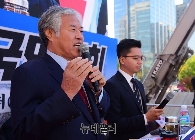 전광훈 한기총 대표회장이 9일 서울 광화문 광장에서 열린 문재인하야범국민투쟁본부 주최 '문재인 퇴진 국민대회'에 발언을 하고 있다.