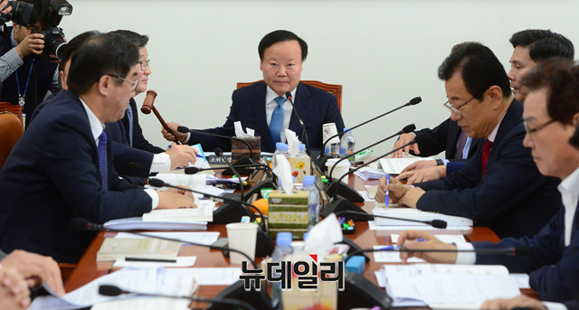 김재원 예결위 소위원장이 12일 오전 국회 예산결산특별위원회 예산안조정소위원회의에 참석해 회의를 주재하고 있다.