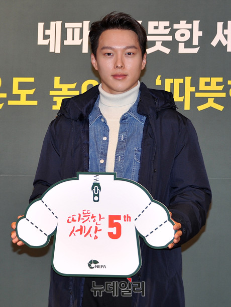 배우 장기용이 12일 오전 서울 중구 웨스틴조선호텔 서울에서 열린 '네파 따뜻한 세상' 행사에서 포즈를 취하고 있다.올해로 5년째 진행된 '네파 따뜻한 세상' 캠페인은 선행으로 일상을 따뜻하게 해준 미담의 주인공들에게 감사패와 패딩을 전달하는 행사다. 이날 네파는 착한 한 끼 열풍을 불러온 진짜파스타 오인태 사장, 길고양이들을 위해 보틀로 펀딩을 한 초등학생 남매 이시연 양과 이상화 군, 폭행 당하는 여성을 구한 해병대 서승환 씨에게 감사패와 패딩을 전달했다.