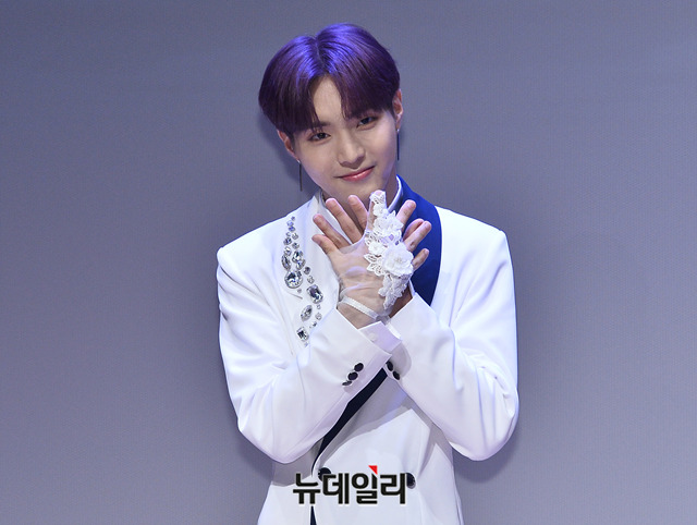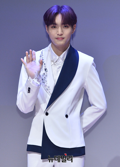 세븐어클락 앤디가 12일 오후 서울 마포구 에스플렉스센터에서 열린 미니앨범 '백야(White Night)' 쇼케이스에서 포토타임을 갖고 있다.