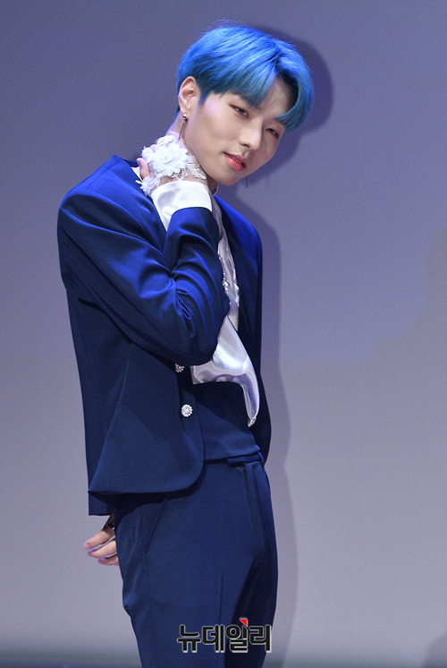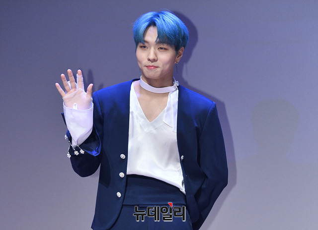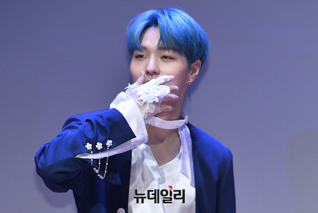 세븐어클락 태영이 12일 오후 서울 마포구 에스플렉스센터에서 열린 미니앨범 '백야(White Night)' 쇼케이스에서 포토타임을 갖고 있다.