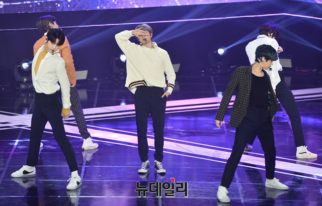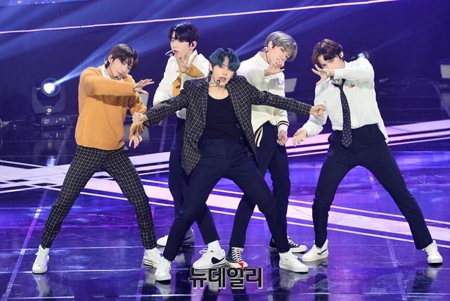아이돌그룹 '투모로우바이투게더(TXT)'가 12일 오후 서울 마포구 SBS 프리즘타워에서 열린 SBS MTV '더 쇼(THE SHOW)' 생방송에서 무대를 선보이고 있다.