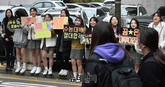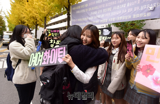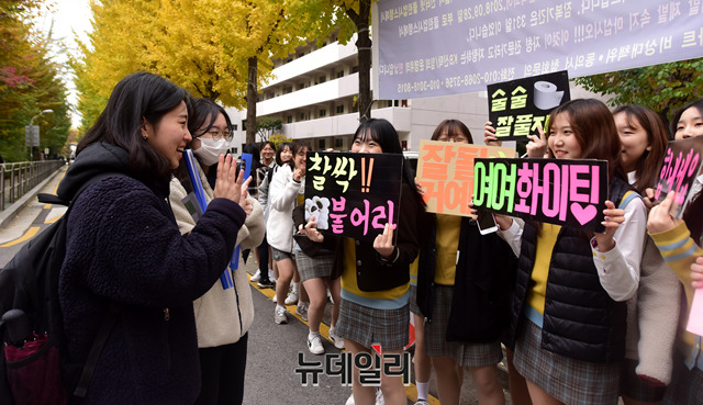 [포토] 수능 D-1, 응원받는 여의도여고 수험생들