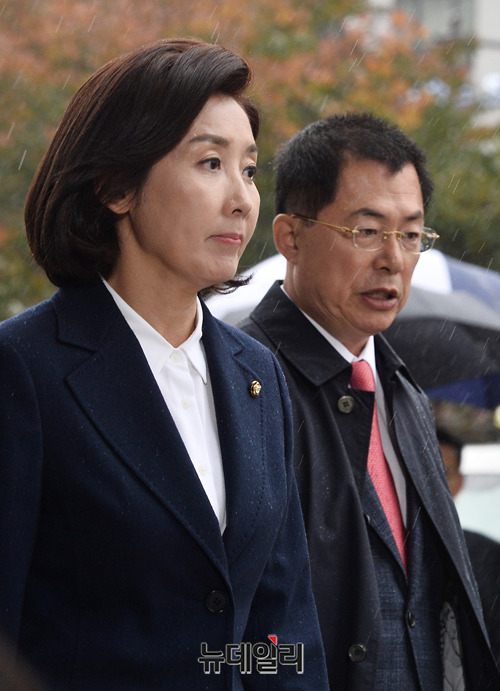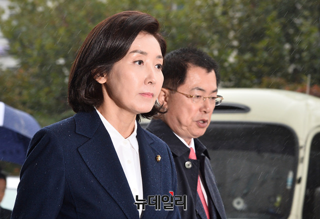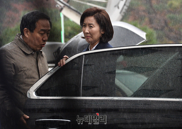 나경원 자유한국당 원내대표가 13일 오후 서울 양천구 서울남부지검으로 패스트트랙 지정 과정에서 일어난 충돌과 관련해 수사를 받기 위해 출석하고 있다.
