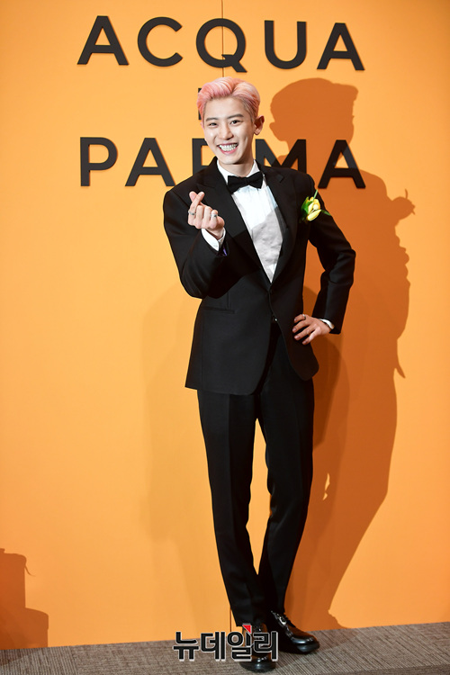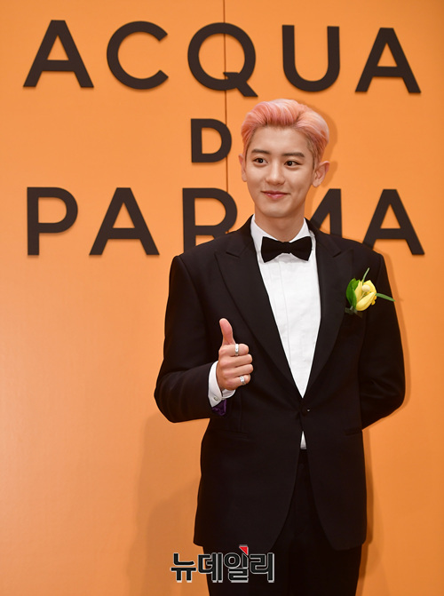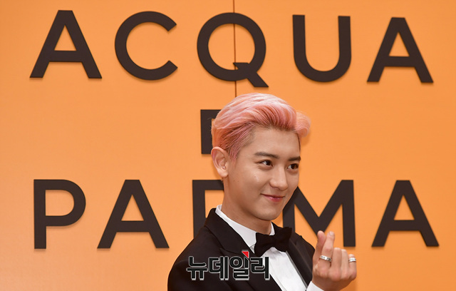 엑소 찬열이 13일 오후 서울 강남구 현대백화점 무역센터점에서 열린 향수 브랜드 '아쿠아 디 파르마(ACQUA DI PARMA)' 팬사인회에서 포토타임을 갖고 있다.