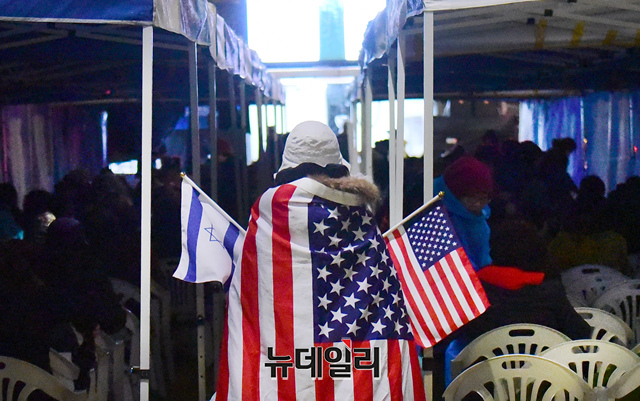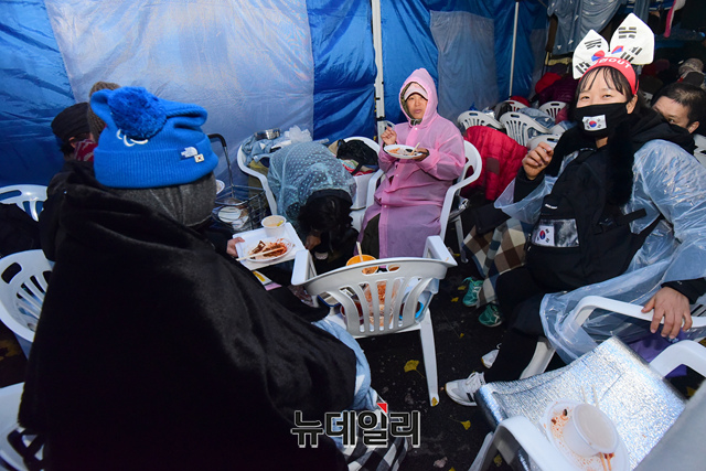 [포토] "文대통령 퇴진까지" 한파에 농성장 지키는 자유시민들