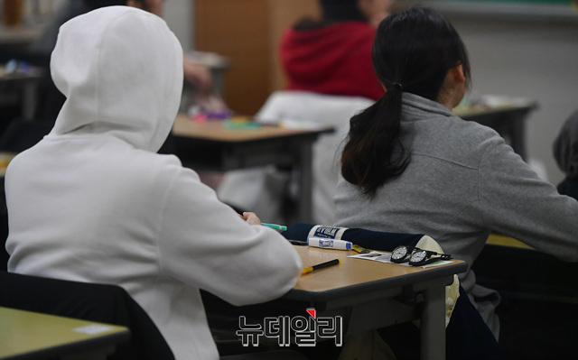 2020학년도 대학수학능력시험이 14일 오전 8시 40분부터 전국 86개 시험지구 1,185개 시험장에서 일제히 치러지고 있다. 서울 강남구의 한 시험장에서 수험생들이 감독관의 지시사항을 듣고 있다.