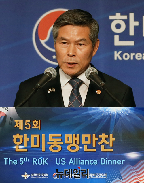 정경두 국방부 장관이 14일 오후 서울 중구 밀레니엄힐튼호텔에서 열린 '제5회 한미동맹 만찬'에서 환영사를 하고 있다. (사진=공동취재단)