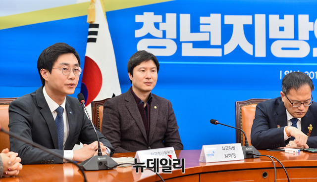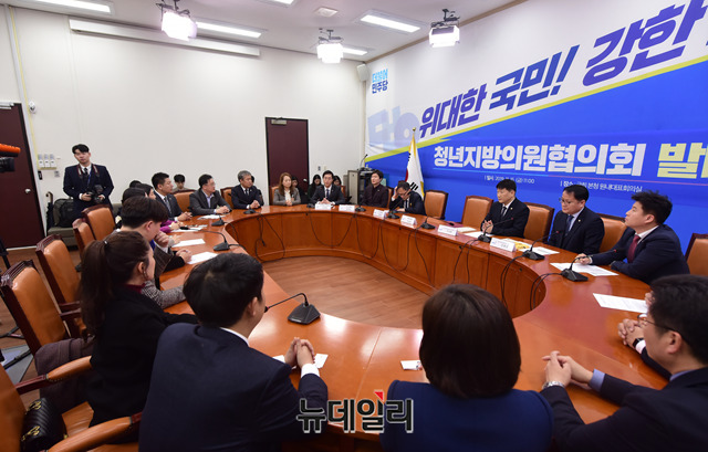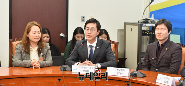 장경태 더불어민주당 전국청년위원장이 15일 오전 국회에서 열린 전국청년위원회 청년지방의원협의회 발대식에서 발언을 하고 있다.