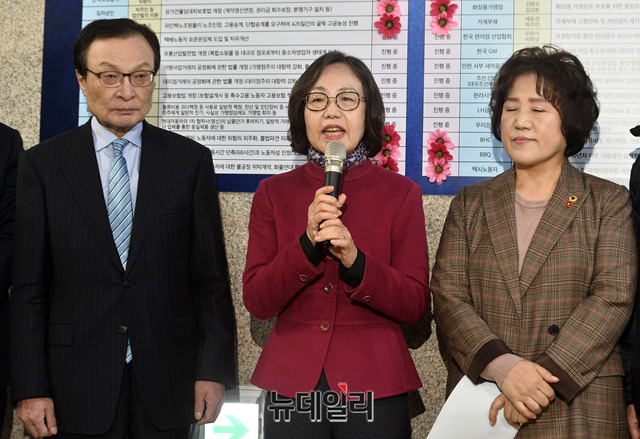 권미혁 더불어민주당 의원이 18일 오전 국회에서 열린 을지로위원회 상생꽃 달기 행사에서 발언을 하고 있다.