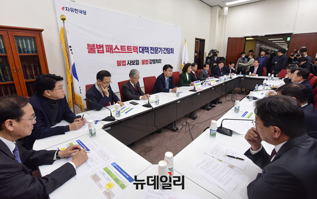 나경원 자유한국당 원내대표가 18일 오후 국회에서 열린 '불법 패스트트랙 대책 전문가 간담회'에서 발언을 하고 있다.