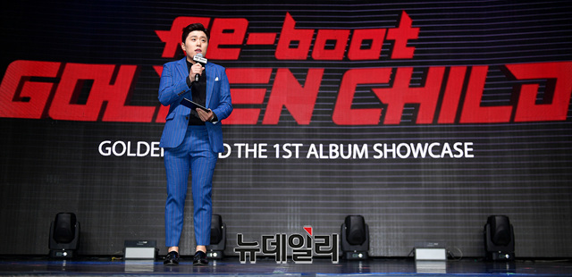 MC하루가 18일 오후 서울 광진구 예스24 라이브홀에서 열린 아이돌그룹 골든차일드 첫 정규앨범 '리부트(Re-boot)' 쇼케이스에서 수록곡을 소개하고 있다.