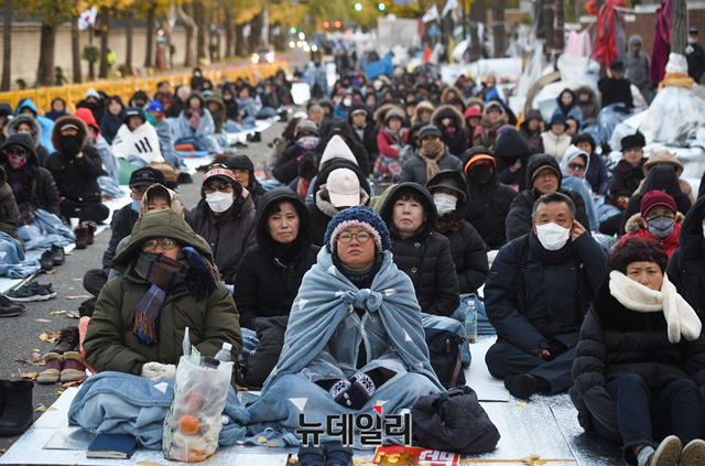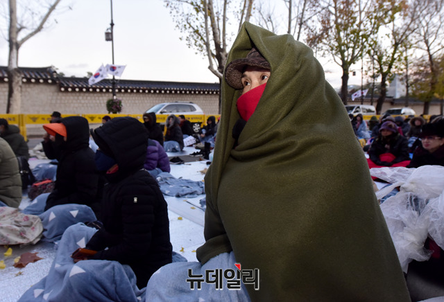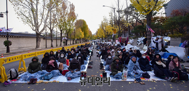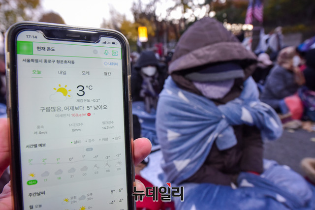 [포토] 한파주의보에도 이어지는 '문재인 퇴진' 철야농성