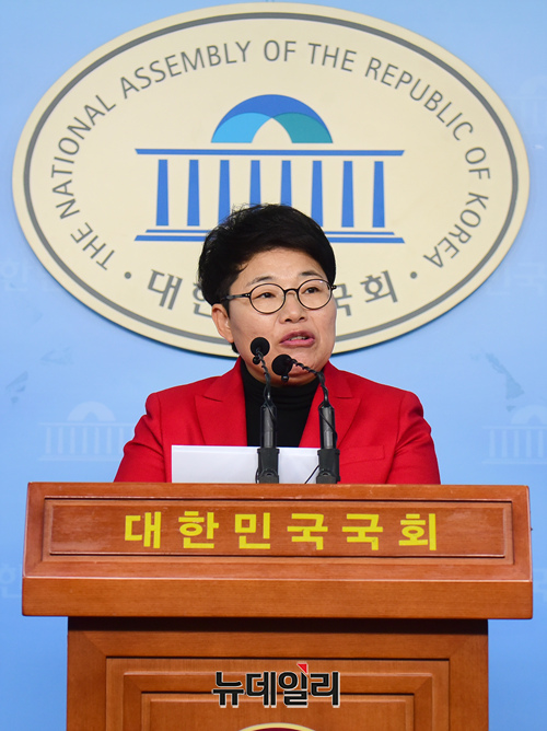 임이자 자유한국당 국회 환경노동위원회 간사가 19일 오전 국회 정론관에서 '정부의 주52시간 근로제 보완대책' 관련 기자회견을 갖고 있다.