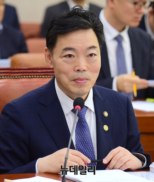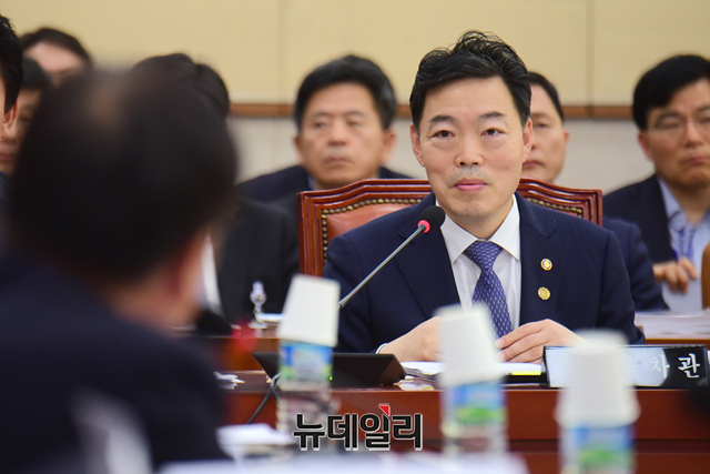 김오수 법무부 차관이 19일 오전 국회에서 열린 법제사법위원회 전체회의에 참석해 의원들의 질문에 답하고 있다.