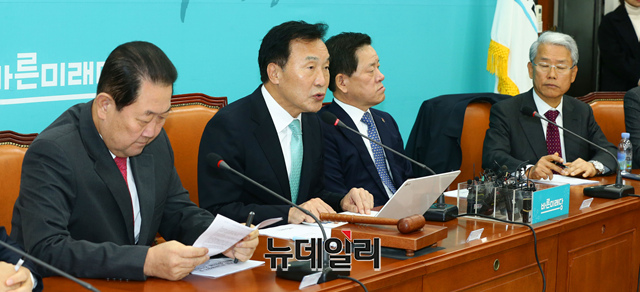 손학규 바른미래당 대표가 20일 오전 국회에서 열린 최고위원회의 및 중진의원 연석회의에서 모두발언을 하고 있다.