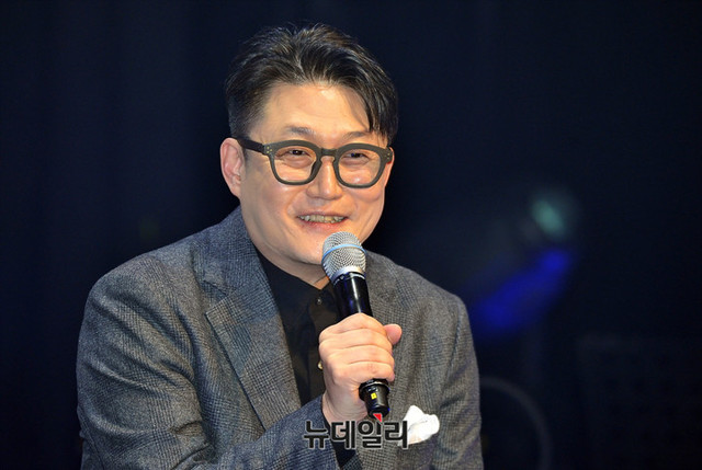 가수 김현철이 20일 오전 서울 중구 CKL스테이지에서 열린 정규 10집 앨범 '돛' 발매 기념 음악감상회에서 앨범 소개를 하고 있다.