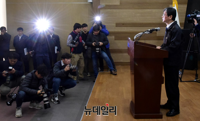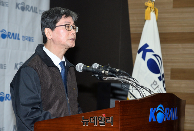 손병석 코레일 사장이 20일 오전 서울 용산구 코레일 서울본부에서 열린 기자회견에서 철도노조의 무기한 총파업과 관련해 대책을 밝히고 있다.