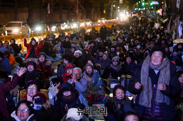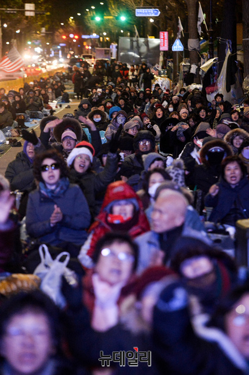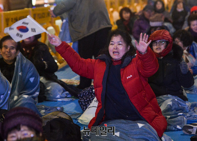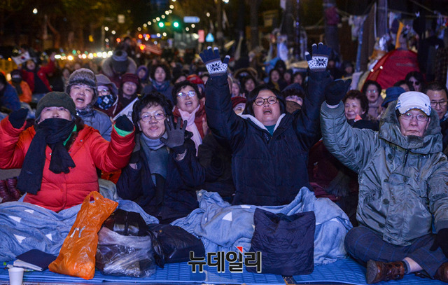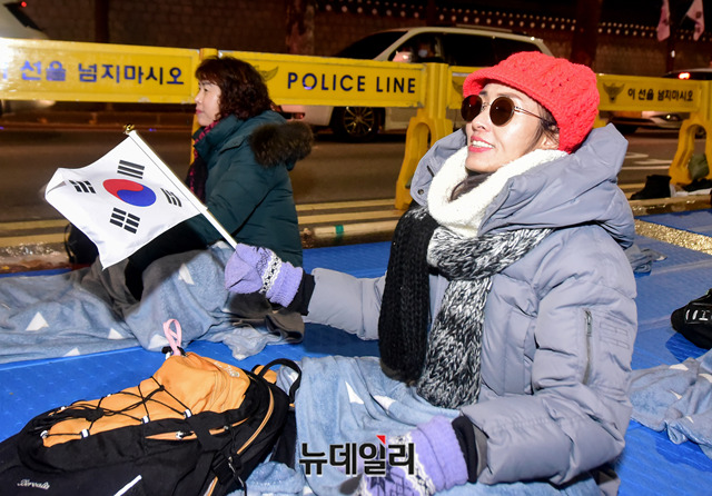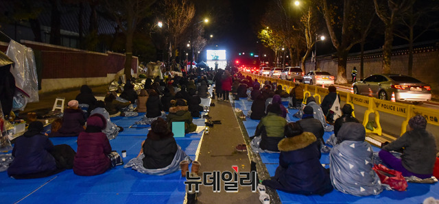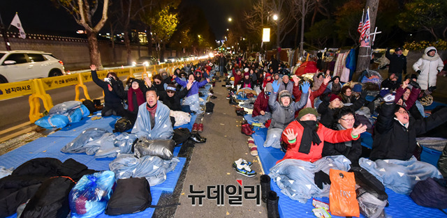 [포토] 49일 맞은 청와대 '문재인 퇴진' 철야농성장...황교안 방문