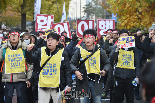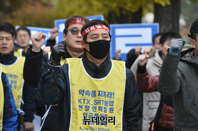 [포토] 국회 앞 찾은 '철도노조' 임금인상·인원충원 촉구 결의대회