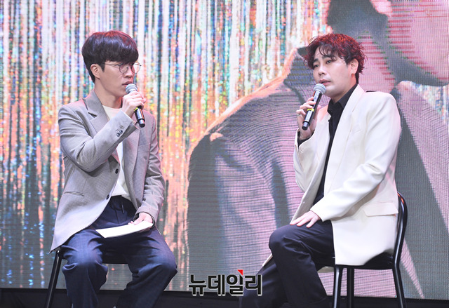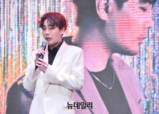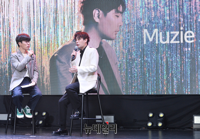 가수 뮤지가 22일 오후 서울 마포구 무브홀에서 열린 두 번째 미니앨범 '코스모스(COSMOS)' 쇼케이스에서 수록곡 소개를 하고 있다.