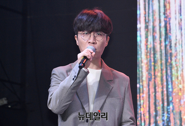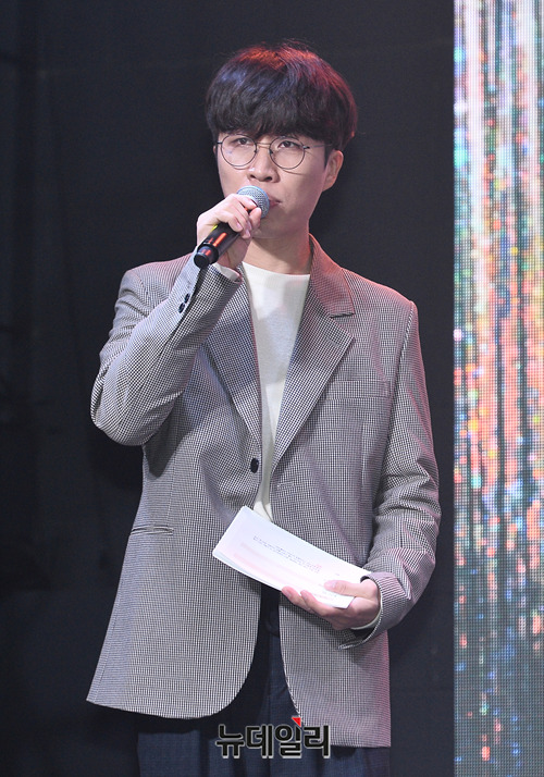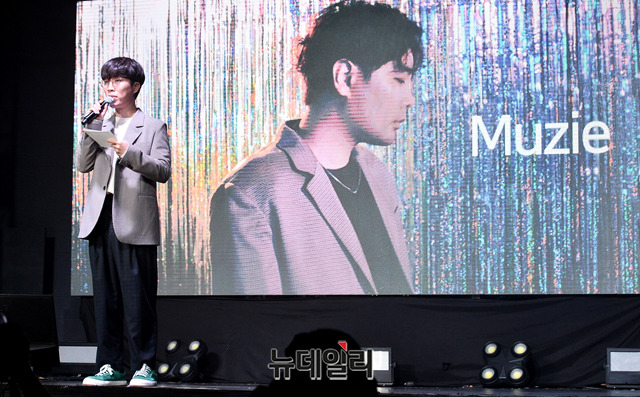 소란 고영배가 22일 오후 서울 마포구 무브홀에서 열린 가수 뮤지의 두 번째 미니앨범 '코스모스(COSMOS)' 쇼케이스에서 사회를 맡고 있다.
