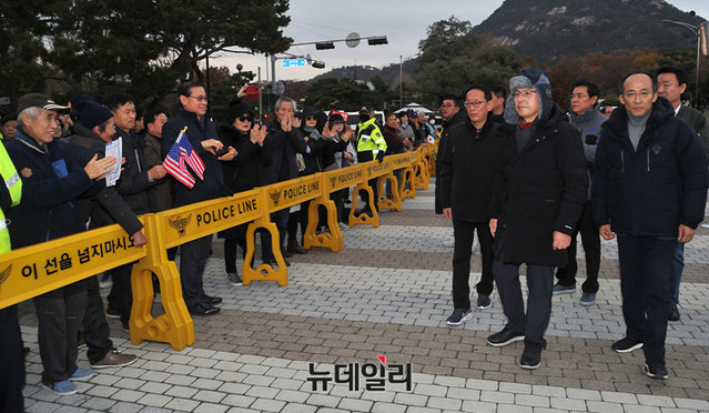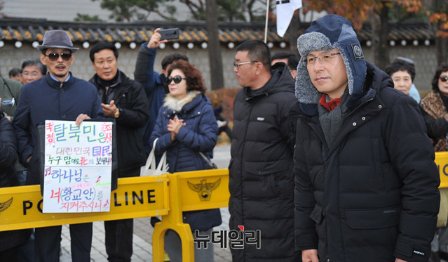 황 대표는 전날 밤 청와대에서 100m 떨어진 사랑채 앞에서 텐트를 치고 노숙 철야농성을 했다.
