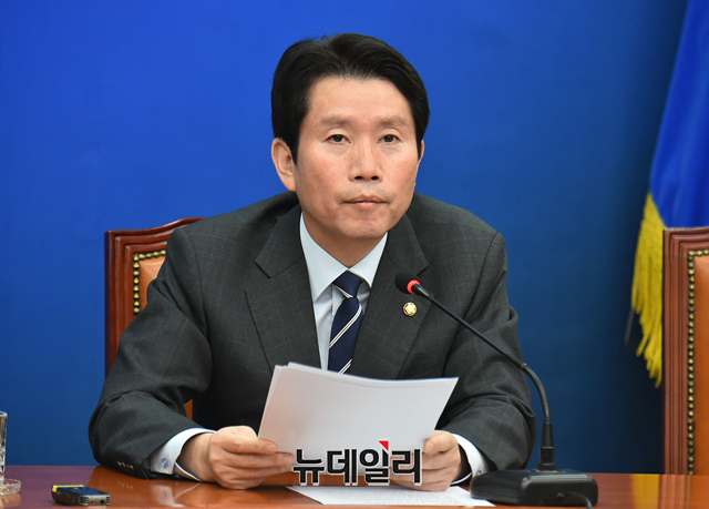 이인영 더불어민주당 원내대표가 25일 오전 국회에서 열린 최고위원회의에 참석해 모두발언을 하고 있다.