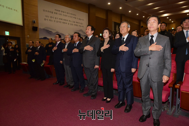 [포토] 김영삼 전 대통령 서거 4주기 기념행사 국민의례 하는 참석자들